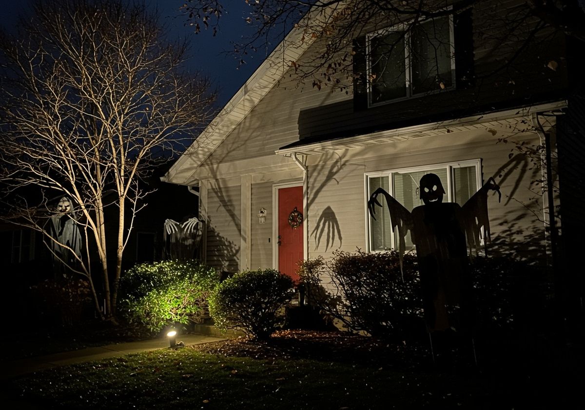 One of the most effective ways to create a Halloween atmosphere is through silhouettes and shadow play. Strategically placed lighting can cast eerie shadows of your existing plants or Halloween-themed props against your home's facade. Consider using spotlights to highlight bare branches, creating the illusion of grasping claws reaching out from the darkness. You can also cut out spooky shapes from plywood or cardboard and place them behind bushes, letting the light transform them into monstrous figures.