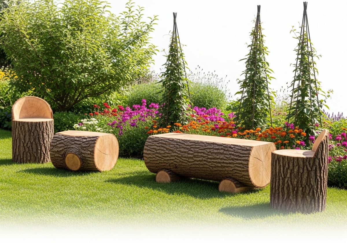 Individual logs can serve as natural seating options throughout your garden. Place them strategically near fire pits, flower beds, or scenic viewpoints to provide comfortable and inviting spots for relaxation. Additionally, logs can be used as decorative elements, such as focal points in a rock garden or supports for climbing plants. Their organic shapes and textures add visual interest and blend seamlessly with the surrounding landscape.