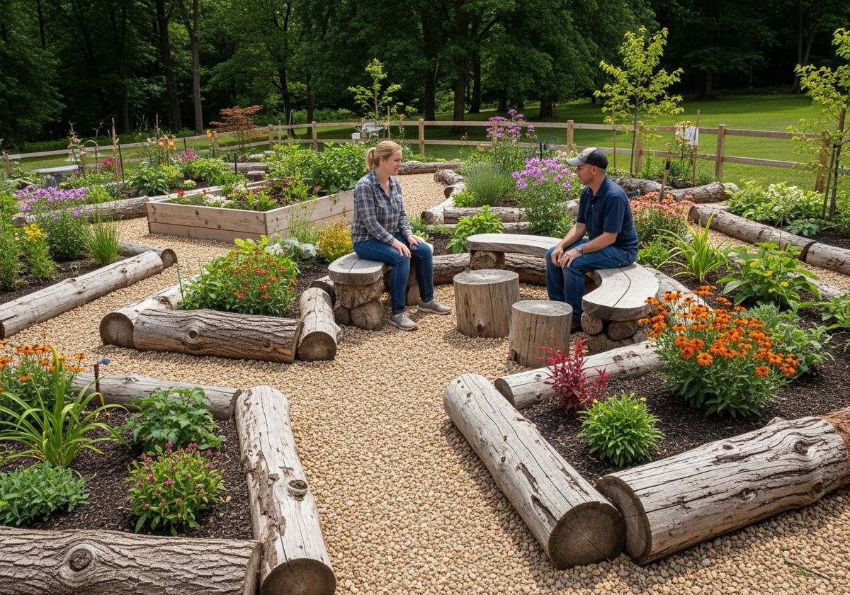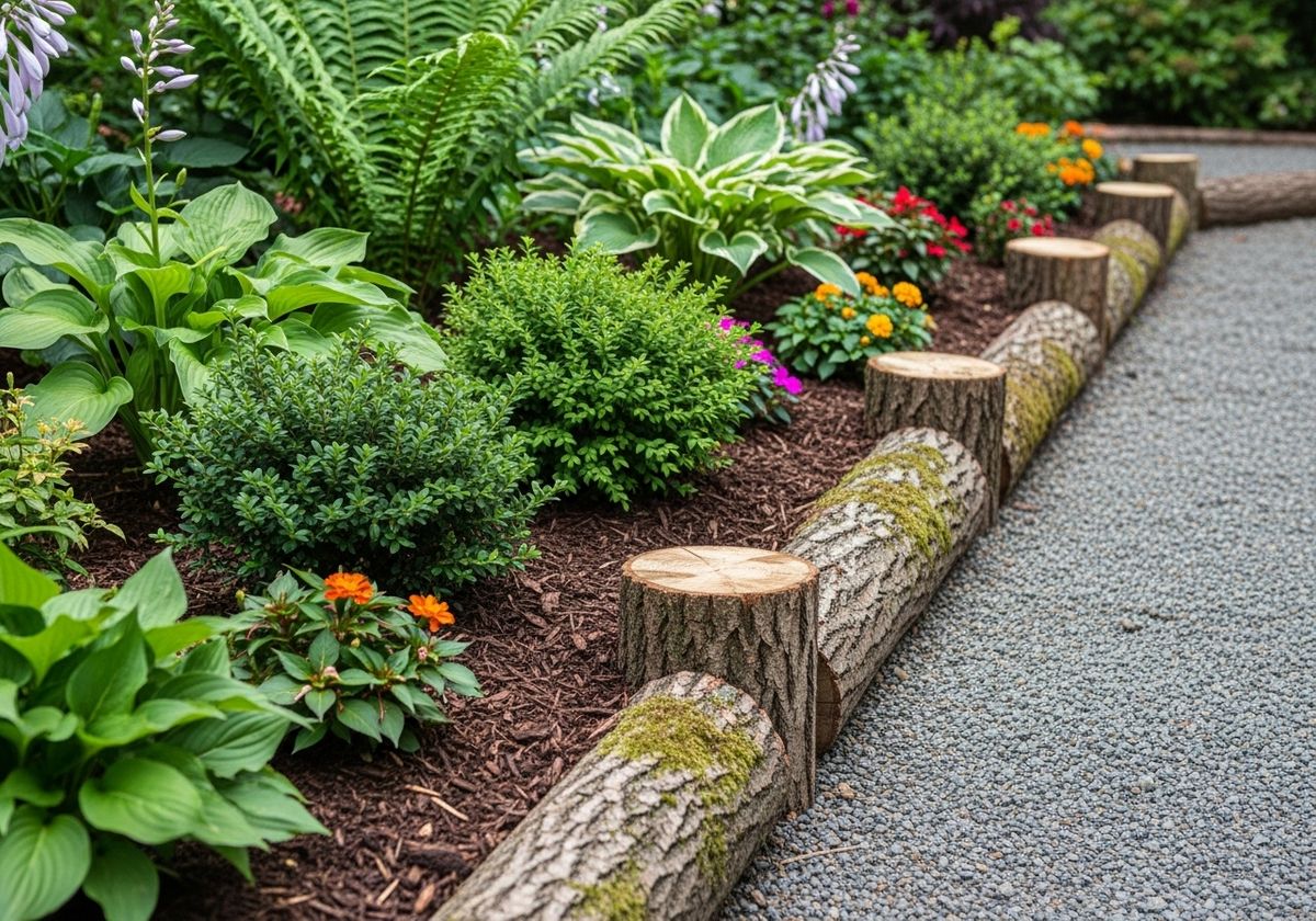 Using logs as borders along garden beds or pathways is a simple yet effective way to define spaces and add a rustic touch. Partially bury the logs to create a neat edge that prevents soil erosion and keeps mulch in place. The natural texture and color of the wood provide a pleasing contrast to the greenery of your plants and the surfaces of your walkways.
